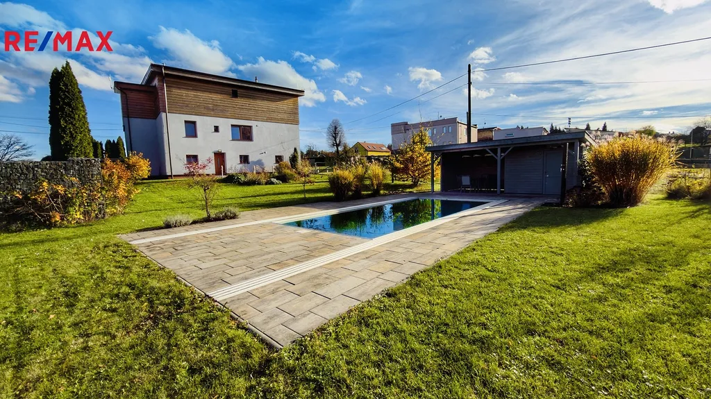 K prodeji exkluzívně nabízíme nadstandardní dům s velkou udržovanou zahradou, prostorným bazénem a dostatkem parkovacích a garážových stání.
