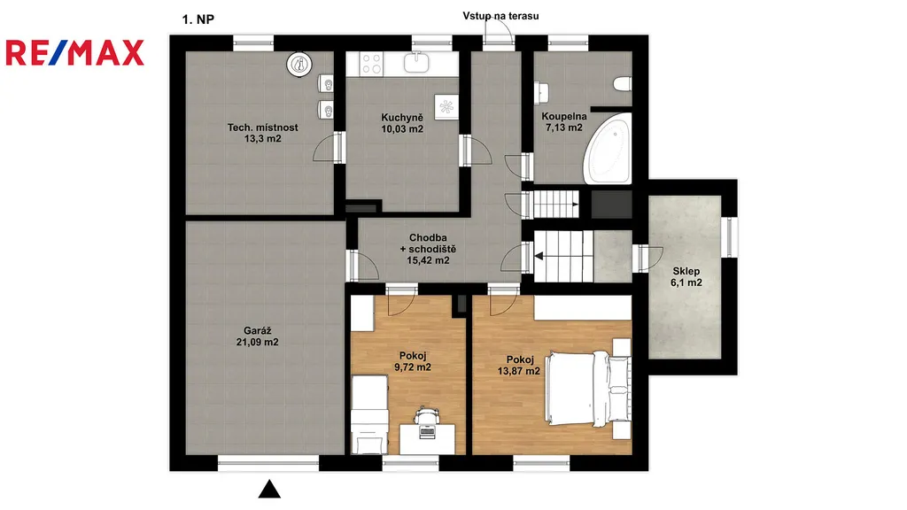 III. NP. - nadstandardně prostorný byt 3+KK s podlahovou plochou 102 m², který tvoří prostorný obývací pokoj s kuchyňským koutem, dva pokoje, koupelna se sprchovým koutem a WC.