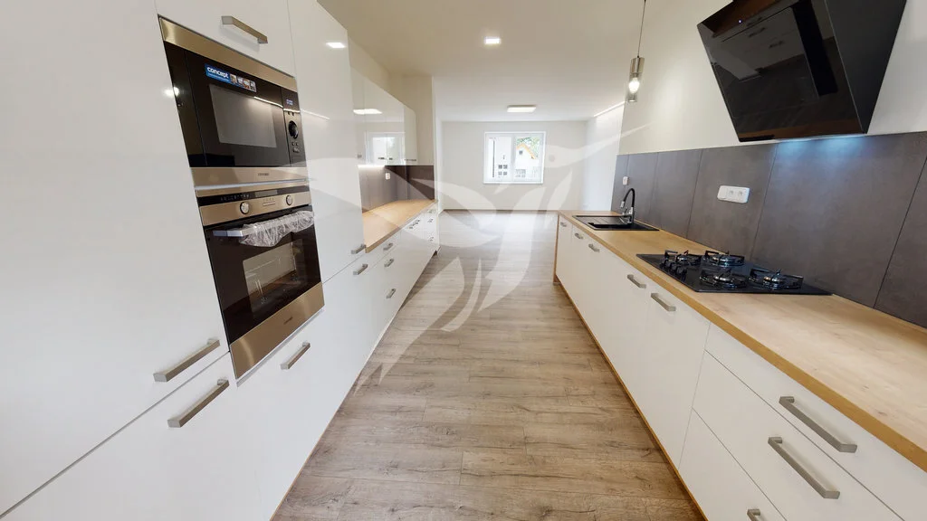 Nabízíme k dlouhodobému pronájmu bytovou jednotku o dispozici 4+kk. Byt o celkové výměře 118 m² je situován v 1.NP. Byt je tvořen z 2x samostatného pokoje, samostatného pokoje s terasou, průchozího pokoje s terasou, předsíně, chodby, toalety, koupelny s toaletou, komory, šatny, sklepa a průchozího pokoje vč. kuchyňské linky.