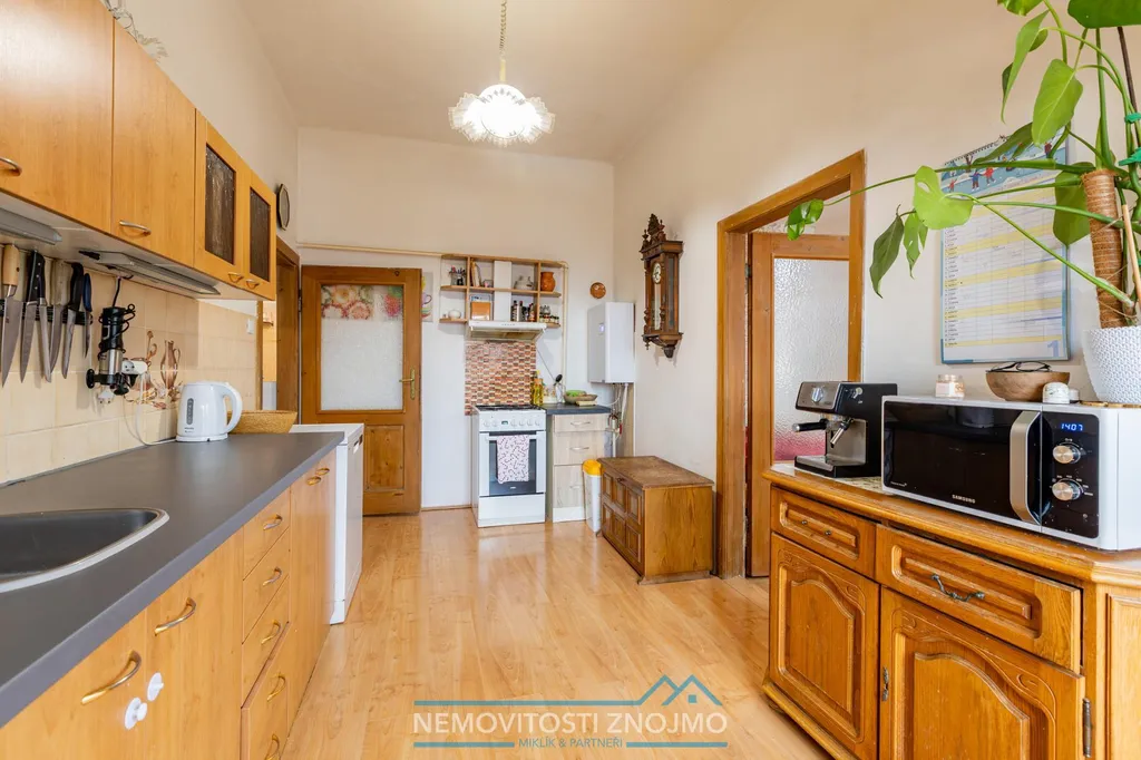 K prodeji nabízíme cihlový byt 3+1, 72m2, se zahradou o velikosti 117m2, náležící pouze k danému bytu. Nemovitost se nachází na ulici Krátká, přímo v katastrálním území Znojmo-město, a do centra je to 5 minut pěšky. Technicky se jedná o prodej 1/2 rodinného domu, který je rozčleněný následovně: