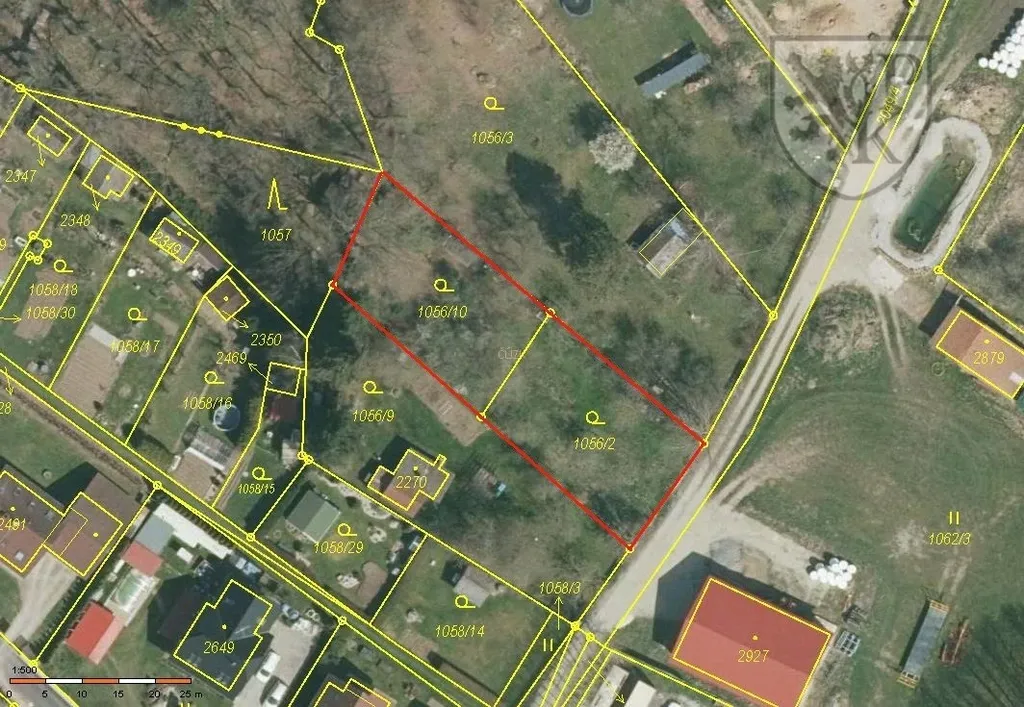 Stavební pozemek, původně využívaný jako zahrada (několik starších ovocných stromů), územním plánem určen ke stavbě rodinného domu. Výměra cca 950 m2.