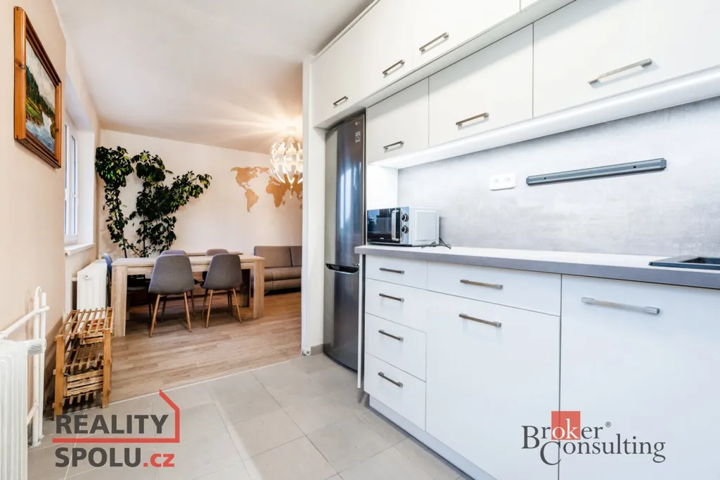 Součástí prodeje je kuchyňská linka a vestavěné skříně.