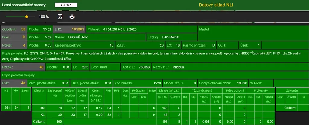 Dále se jedná o p.č. 487 vedená jako lesní pozemek o celkové výměře 737 m2, zastoupení dřevin dle LHO smrk a javor, stáří lesa 42 let.