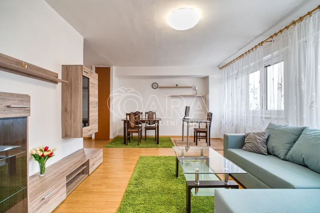 Byt je světlý, vzdušný a velmi prakticky řešený – samostatná ložnice, prostorný obývací pokoj s kuchyňským koutem, jídelní částí i pracovním místem vytváří ideální zázemí pro pár, jednotlivce pracující z domu nebo manažerské bydlení.