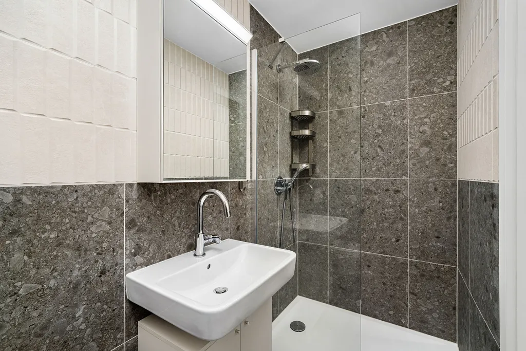Byt je proveden ve vysokém architektonickém standardu. Samozřejmostí jsou hliníková okna s trojskly a dřevěné podlahy. Celkové řešení bytu je nadčasové, funkční a esteticky velmi hodnotné.