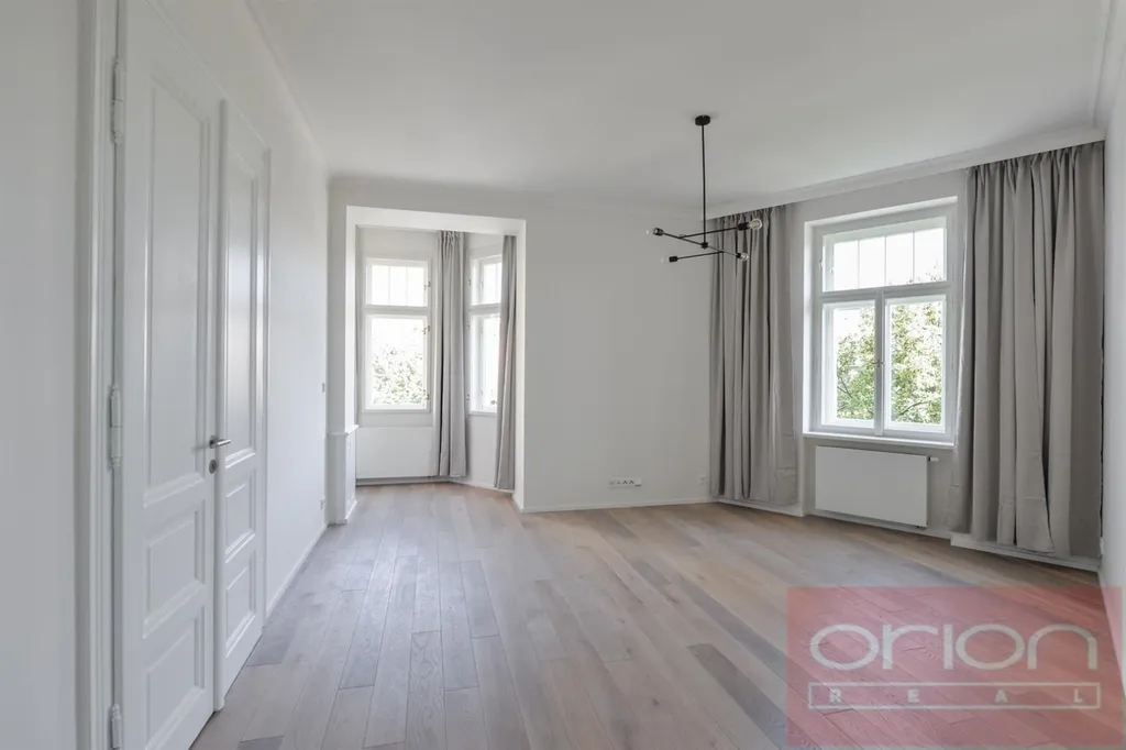 Luxusní, klimatizovaný byt 3+kk (138 m²) ve 2. patře zrekonstruovaného secesního domu s výtahem, v populární lokalitě Praha 3 - Vinohrady, kousek od stanice metra Jiřího z Poděbrad. Byt bude kompletně zařízený, dispozice nabízí vstupní halu, obývací pokoj s jídelní částí a s plně vybavenou kuchyní, 2 ložnice, 2 koupelny se sprchovým koutem, vanou a toaletou, a samostatnou toaletu. Na podlahách jsou dubové parkety a dlažba, byt je vybaven vestavěnými skříněmi, vinotékou, pračkou, sušičkou, má bezpečnostní vstupní dveře, plynový kotel. V blízkosti domu se nachází oblíbený park Riegrovy sady, restaurace, obchody, na náměstí Jiřího z Poděbrad se pravidelně konají farmářské trhy. Je odtud skvělé dopravní spojení do centra, stanice metra a tramvaje náměstí Jiřího z Poděbrad jsou pár minut pěší chůzí. Okolí nabízí spoustu zeleně, ideální podmínky pro sportovní vyžití i relaxaci. Nájemné 3.665 EUR měsíčně. Jedno parkovací místo v podzemní garáži musí být pronajato s bytem za poplatek 6.500+DPH 21% měsíčně.