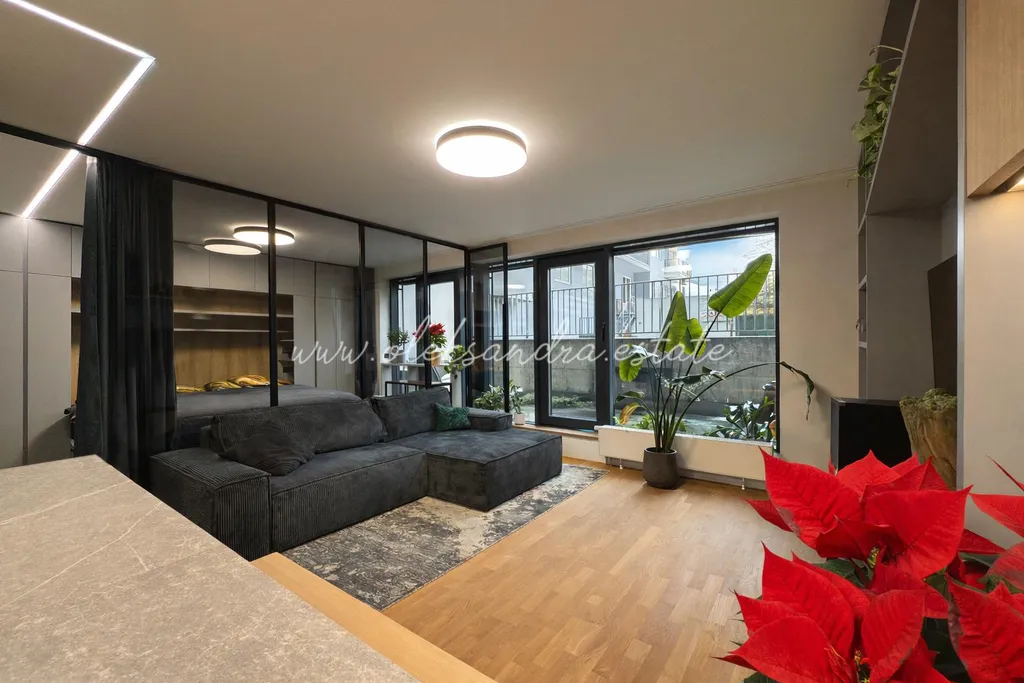 Byt je vybaven chytrou domácností s kompletním osvětlením Philips Hue, spotřebiči Bosch nejvyšší třídy, klimatizací s funkcí chlazení i vytápění, venkovními elektrickými roletami a vyhřívanou podlahou v koupelně. Každý detail zde má své místo a funkci.