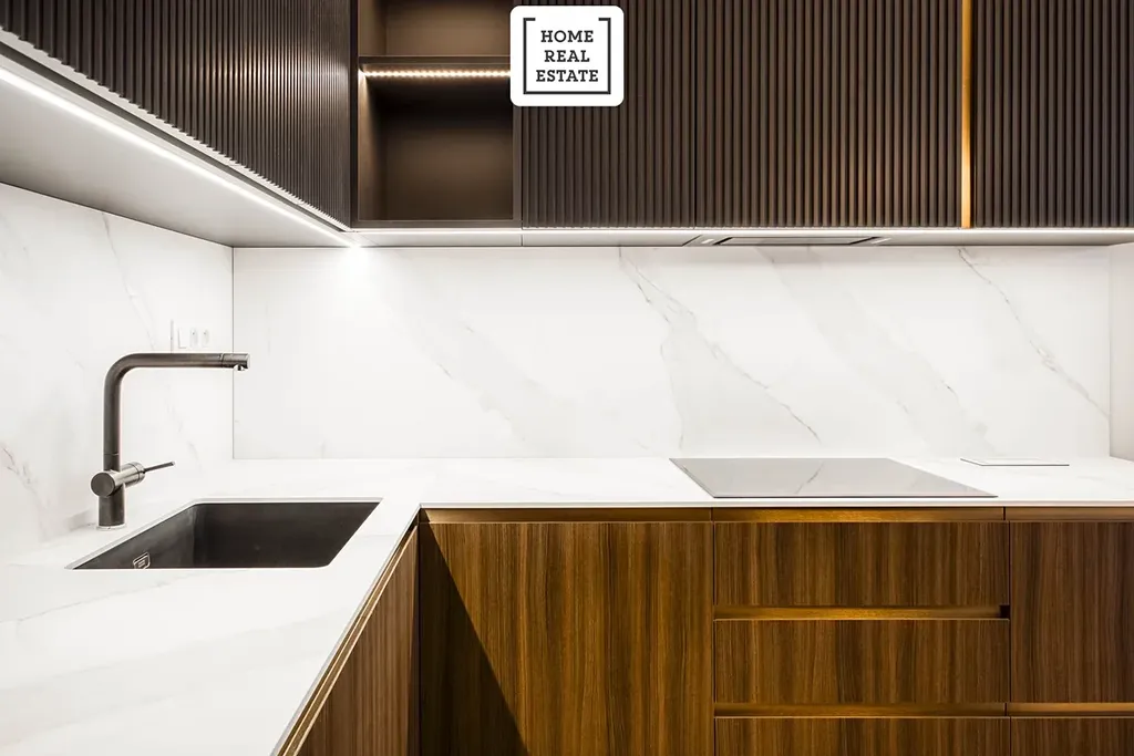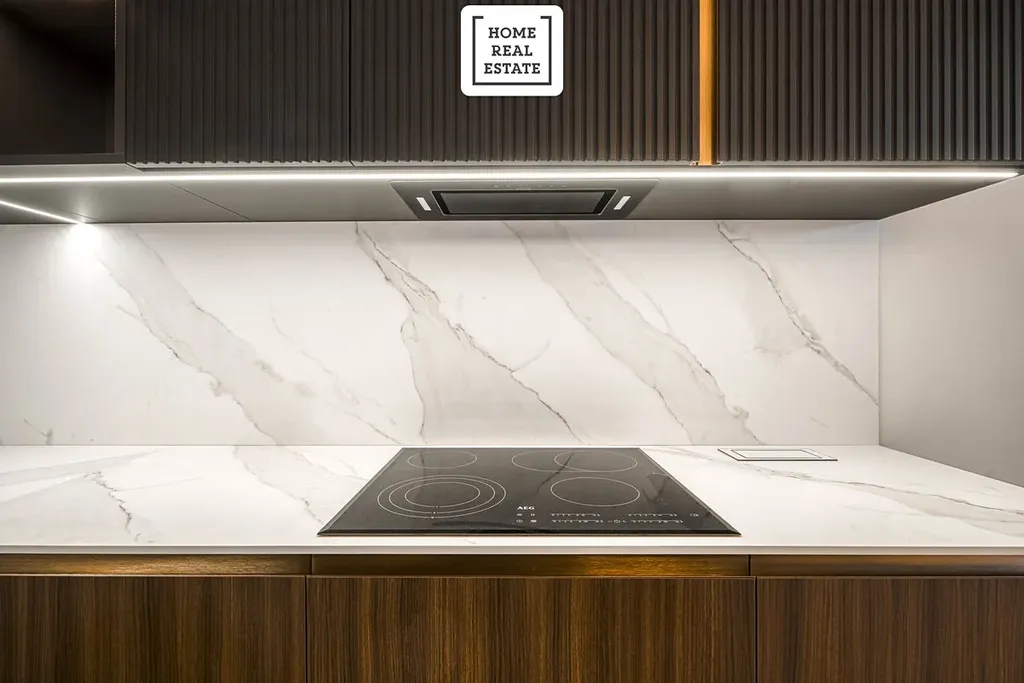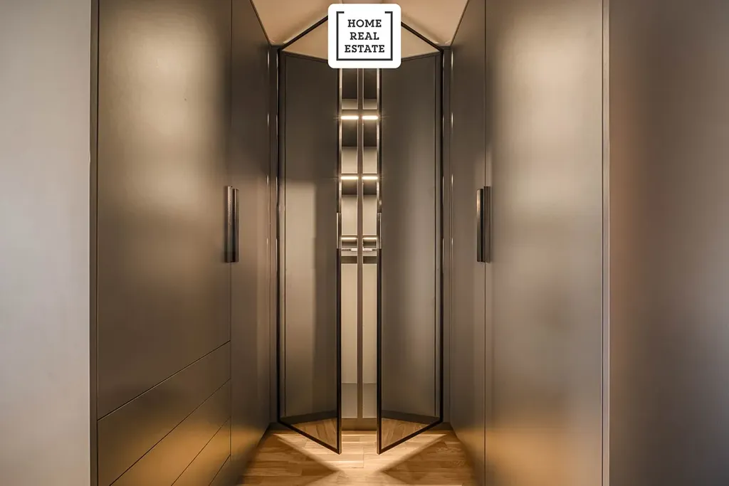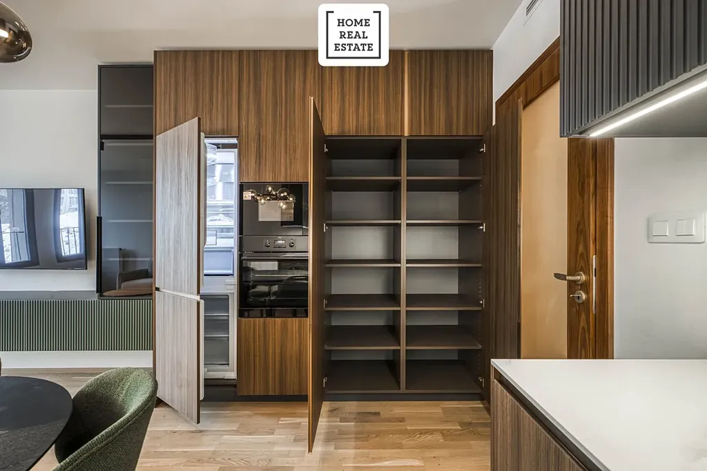 Vybavení bytu bylo zařízené kompletně na míru. Určitě pokud jste milovníci vaření, tak oceníte velkou kuchyň obsahující vše nezbytné a zároveň nadstandardní. Je k dispozici pro budoucího nájemce velké množství vestavěných skříní, velká šatna v ložnici a oddělená prádelna, která obsahuje též vestavěné skříně s pračkou a sušičkou.