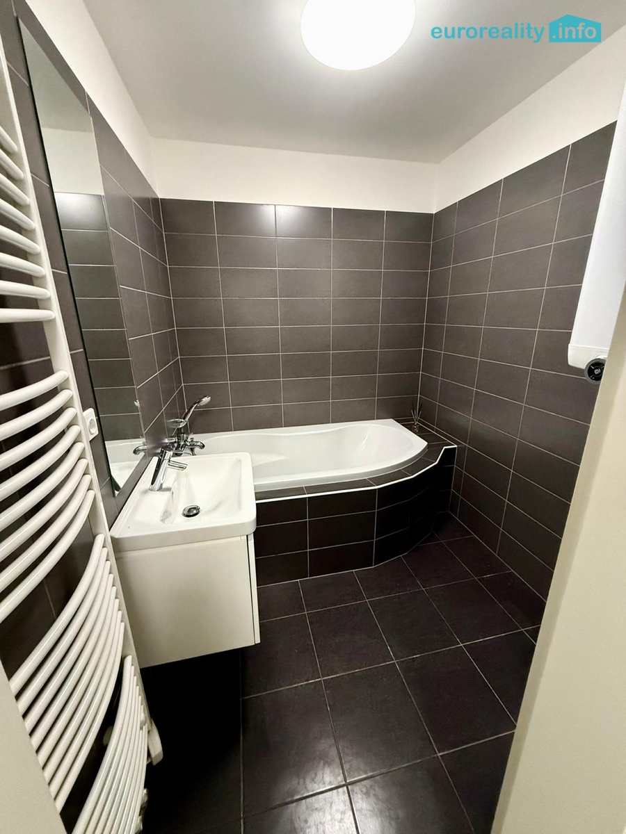 * koupelna s vanou, umyvadlem , s prostorem na pračku se sušičkou