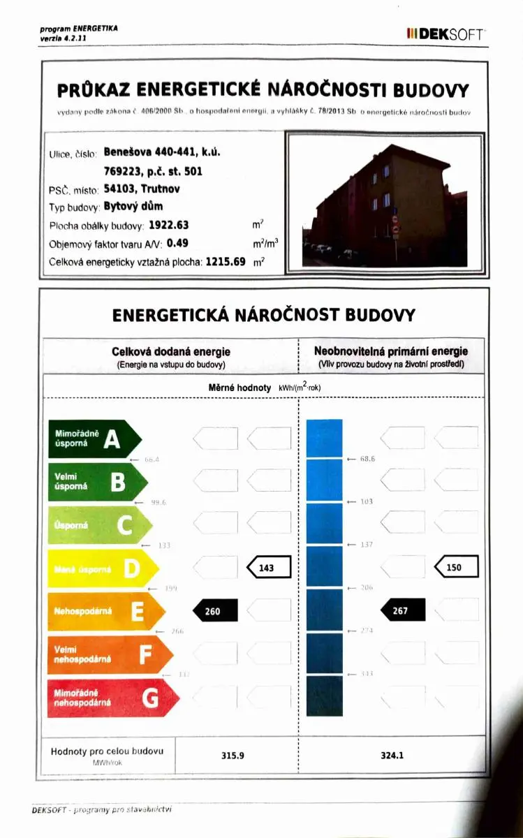 Nabízíme Vám prostorný byt o dispozici 3+1 s balkonem, který je v osobním vlastnictví a výměra jeho podlahové plochy s příslušenstvím činí 111,03 m2. Byt je umístěn ve 3. podlaží zděného domu bez výtahu, a to v klidné ulici Benešova v Trutnově - Poříčí.