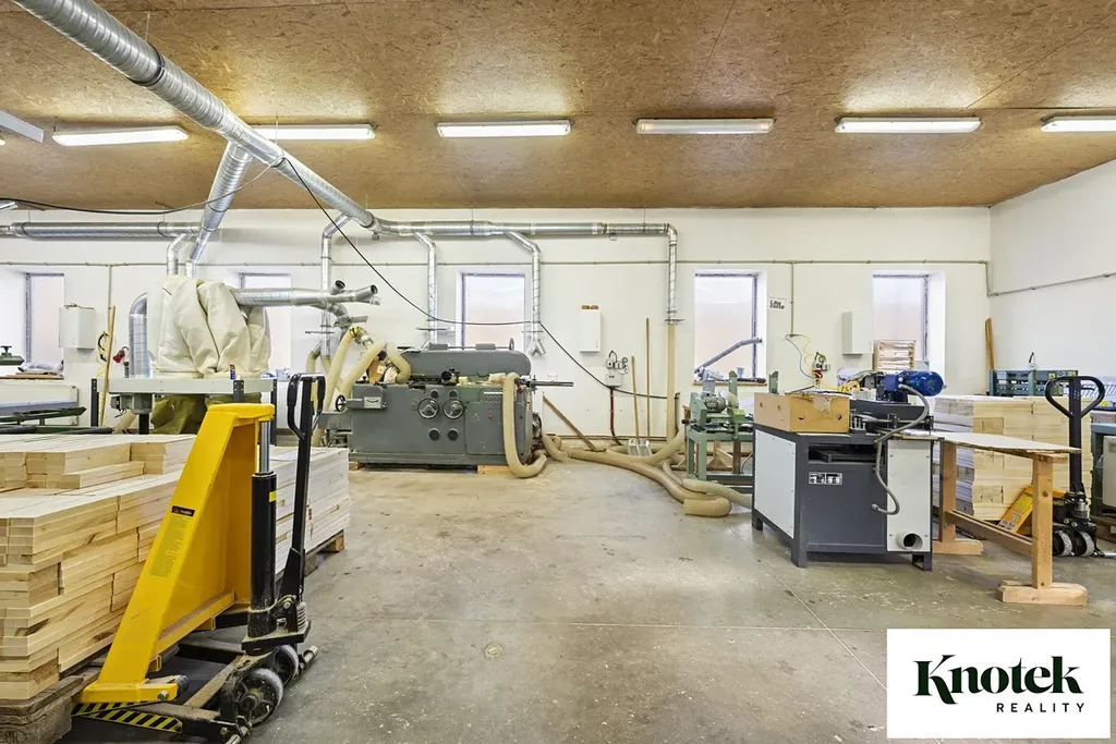- SAMOSTATNÁ HALA s užitnou plochou 178,32 m2. Hala má samostatný vstup a také posuvná vrata s možností vjezdu nákladního auta (sv. v. 3,8 m). V současnosti je hala využívaná jako truhlářská dílna.