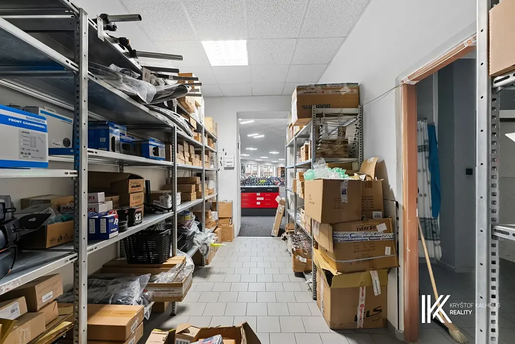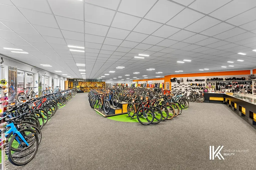 Přízemí nabízí rozsáhlou komerční část o užitné ploše cca 623 m². Hlavní prodejní plocha je řešena jako otevřený prostor cca 410 m2 bez podpěrných sloupů a je vhodná pro showroom, prodejnu či jiný podnikatelský provoz. V zadní části navazují kanceláře, sklady, servisní prostory, sociální zázemí a kuchyňka. Na konci přízemí se nachází chodba se schodištěm a samostatným zadním vstupem, umožňujícím oddělený přístup do obytné části.