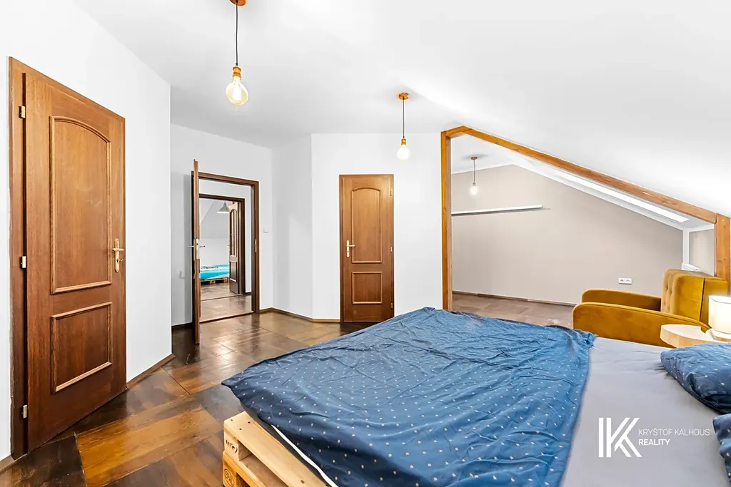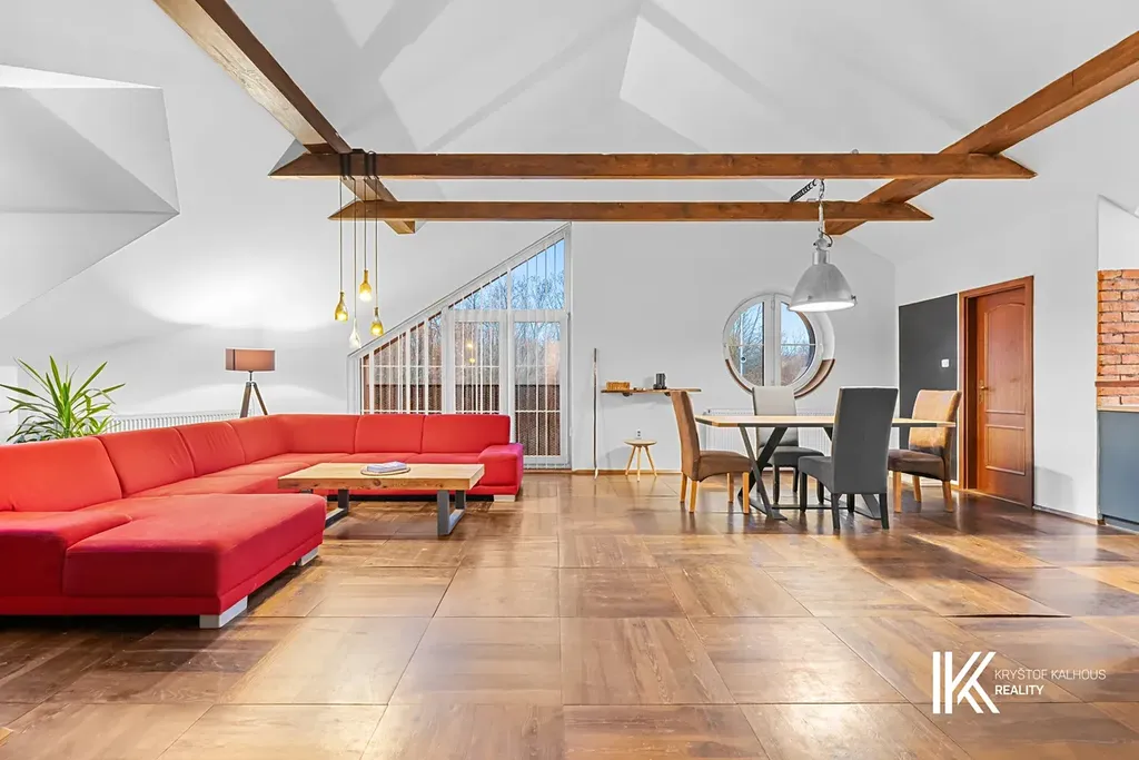 Ve druhém podlaží se nachází obytný apartmán o dispozici 4+kk a užitné ploše cca 156 m². Dominantou je světlý obývací prostor s kuchyňským koutem, spíží, vysokým stropem kopírujícím tvar střechy a velkými francouzskými okny. Apartmán dále nabízí tři ložnice, z toho jednu se dvěma šatnami, velkou koupelnu s vanou i sprchovým koutem, prádelnu s technickým zázemím a druhou samostatnou toaletu. Obytná část je orientována s ohledem na minimalizaci hluku z hlavní komunikace.
