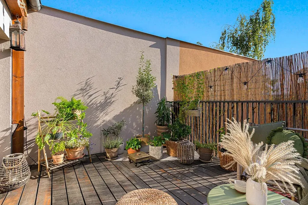 Otevřený obývací pokoj s kuchyňským ostrůvkem je centrem dění – a když budete vařit, stačí se otočit a jste na terase. Zajímavým prvkem je vestavěné patro, kde můžete spát doslova pod oblohou, s výhledem na hvězdy skrz střešní okno. Druhá, samostatná ložnice s výhledem na panorama Nuselského mostu nabízí dostatek soukromí a chytré vestavěné řešení úložného prostoru.