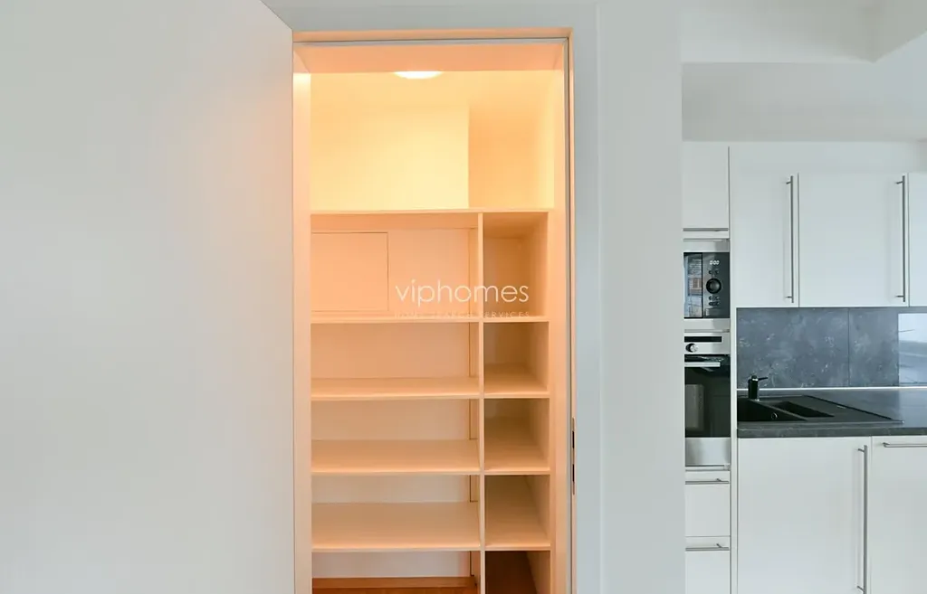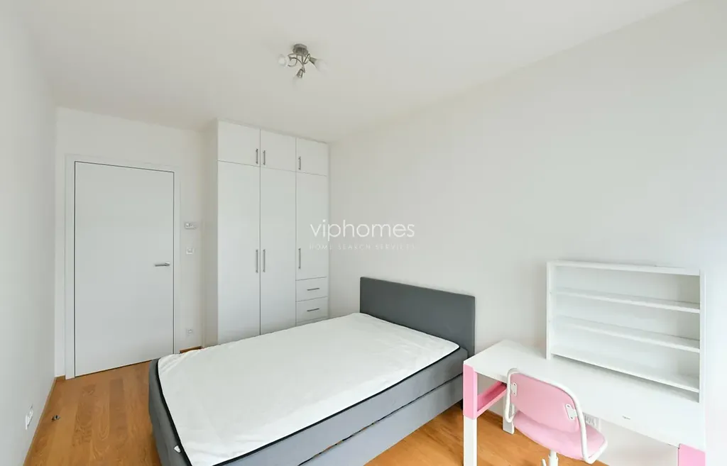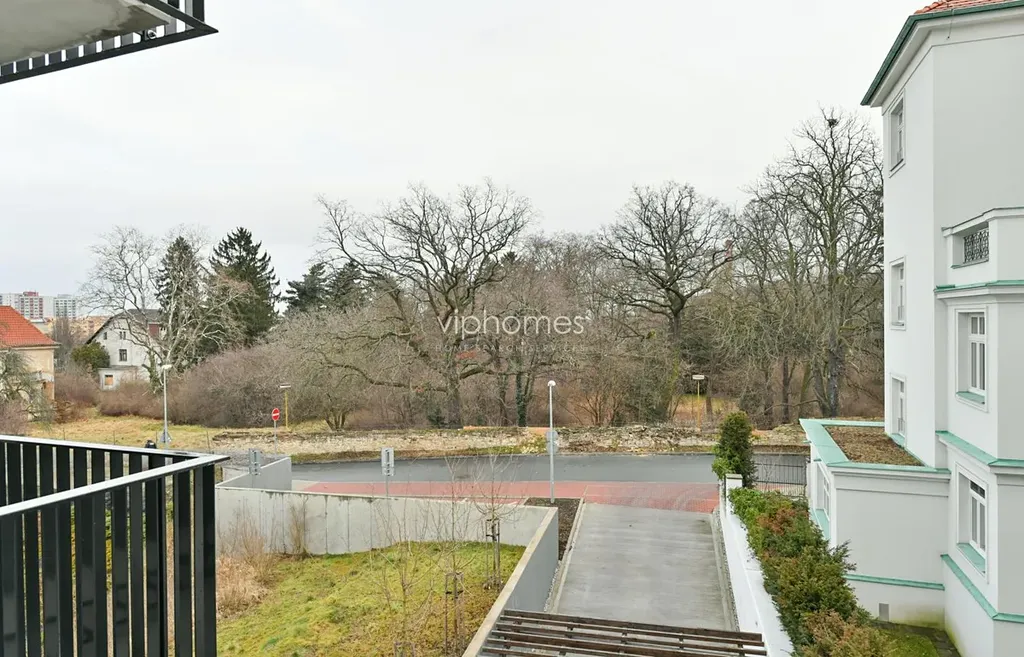 Byt s obytnou plochou 106 m2 sestává z prostorného obývacího pokoje s plně vybaveným kuchyňským koutem a přístupem na terasu, tří ložnic, (jedna s balkonem), šatny,komora, dvou koupelen (vana/sprcha) a samostatné toalety. Dostatek úložných prostor, vestavěné skříně, dřevěná okna a podlahy, videotelefon, bezpečnostní vstupní dveře. Podzemní parkování, sklepní skladovací místnost, SAT, telefon.