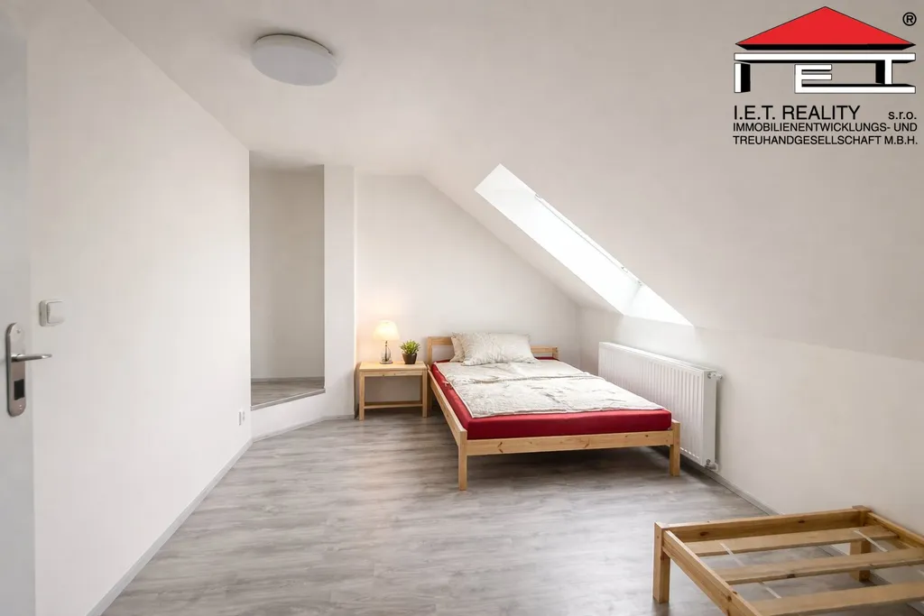 Ve druhém patře je prostorný a útulný podkrovní pokoj, který nabízí dostatek soukromí a klidné zázemí pro bydlení i práci.