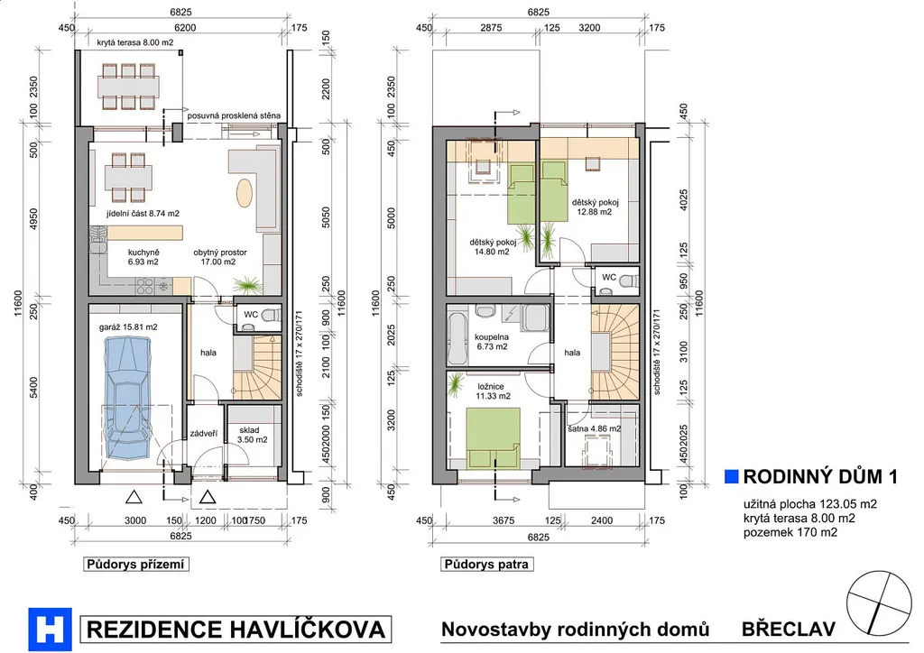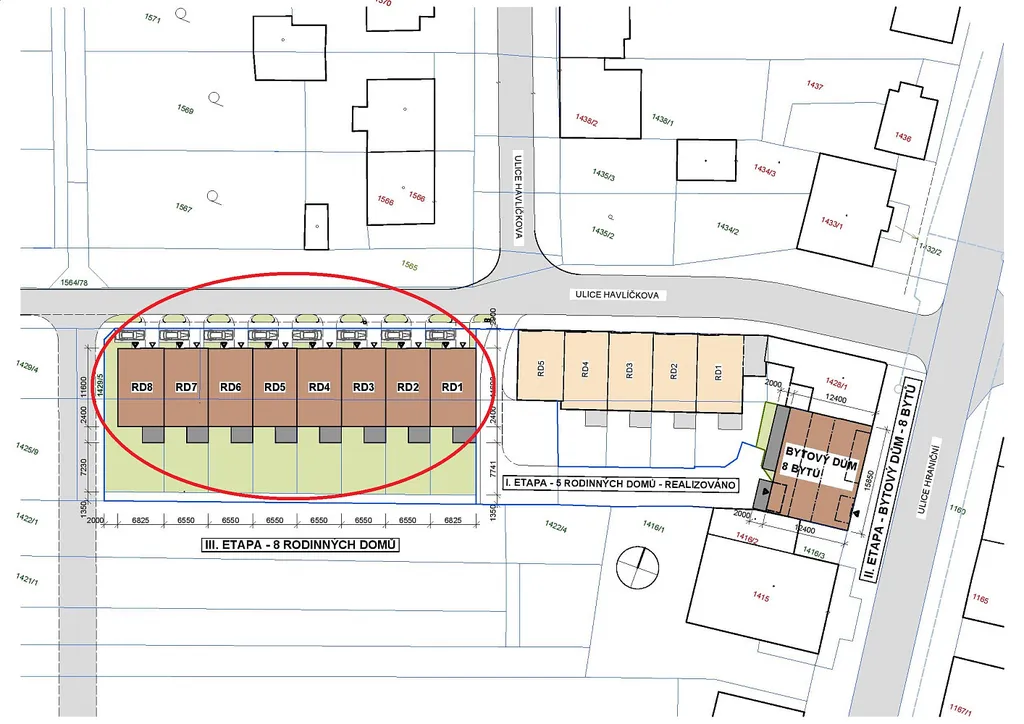 REZIDENCE HAVLÍČKOVA - novostavby 8 RD 4+kk s garáží a terasou, se zahradou, pozemek 160 - 210 m²