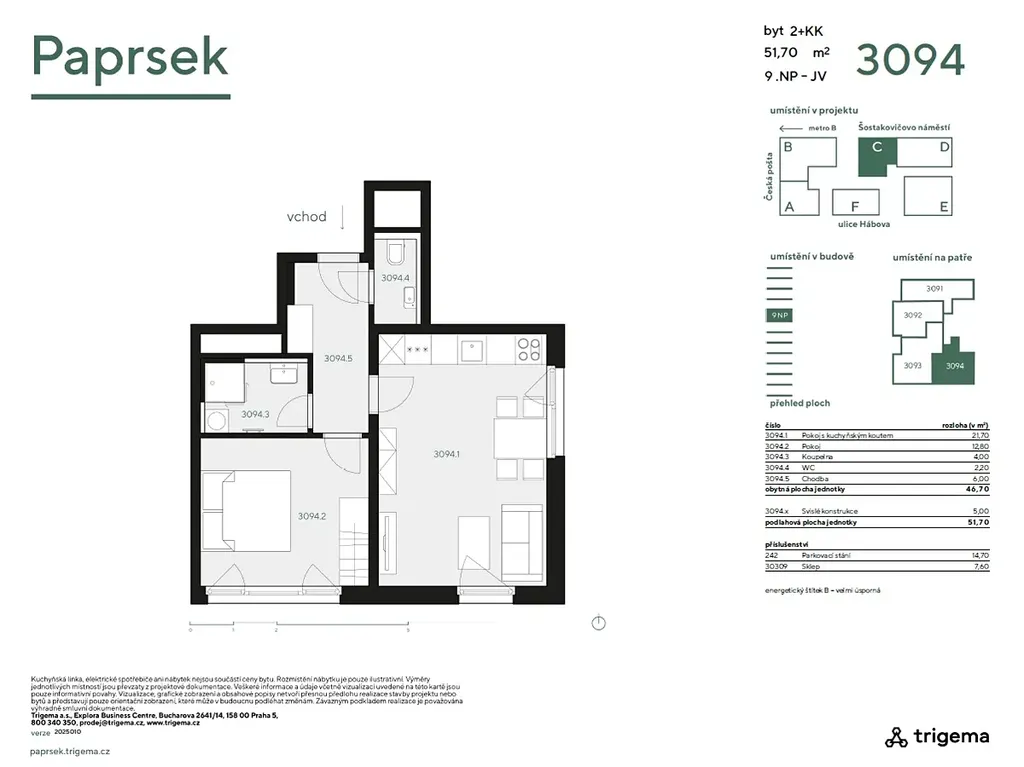 Nabízíme Vám jedinečnou nabídku pronájmu moderního bytu 2+kk s krásným výhledem na Prahu, nacházející se v rezidenčním komplexu PAPRSEK – přímo u stanice metra B – Stodůlky. Tento byt je umístěn v 9. NP a s užitnou plochou bytu 51,7 m² + 7,6 m² sklep. Je ideální pro pár nebo jednotlivce, kteří ocení luxusní a moderní design.
