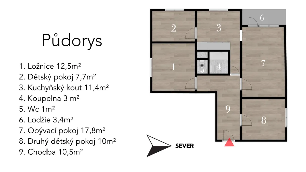 - samotný byt 4+1 (74 m²)