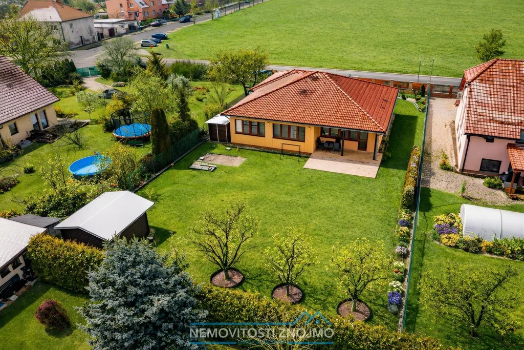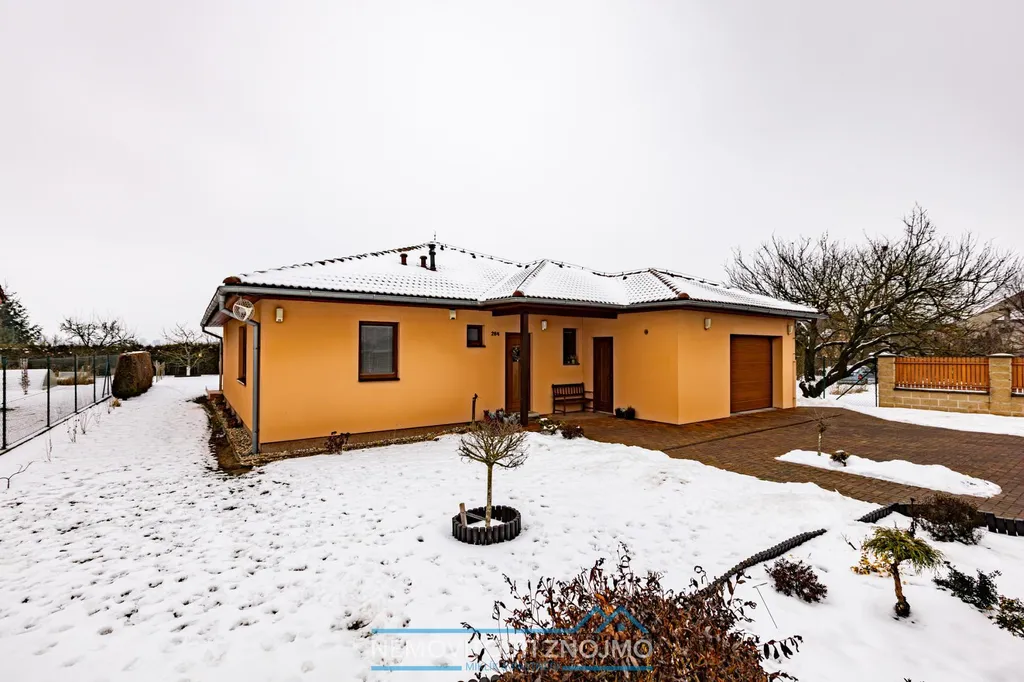 O domě - jedná se o přízemní, velmi chytře řešený rodinný dům o dispozici 4+1 s garáží, situovaný v klidné části obce, ideální pro rodinné bydlení.