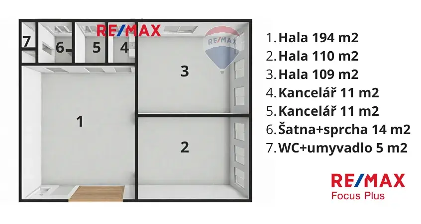 • Zázemí zaměstnanců: šatna + sprcha + WC 19 m²