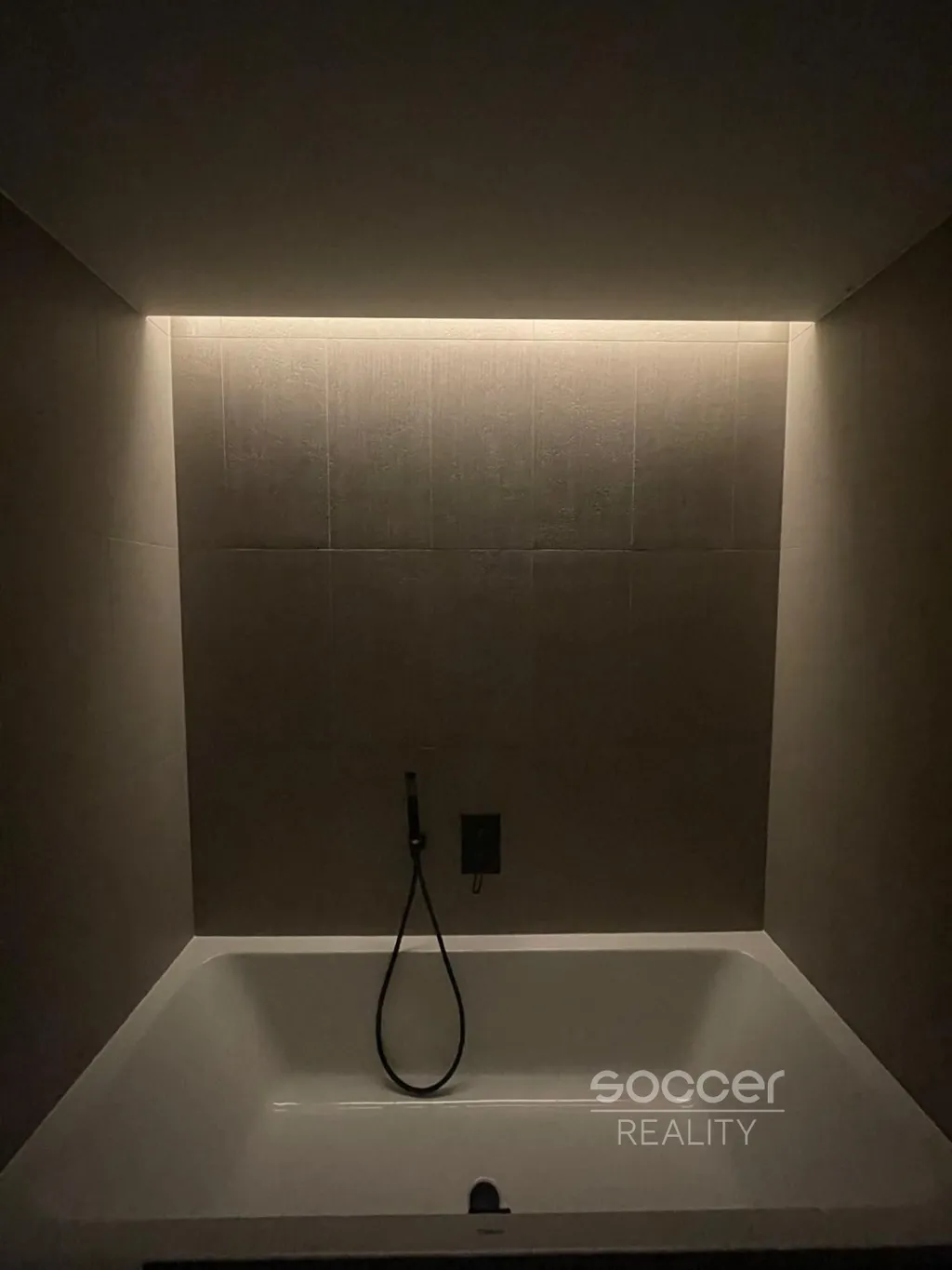 Zařízený je kuchyňskou linkou se spotřebiči, kuchyňským stolem se židlemi, vestavěnou skříní. Koupelna s vanou a umývadlem.