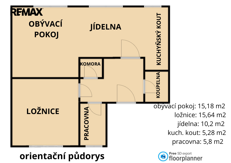 Dispozice bytu nabízí dostatek úložných prostor – vestavěná skříň v chodbě, samostatná šatna / komora, dále komoru na patře a sklepní kóji.