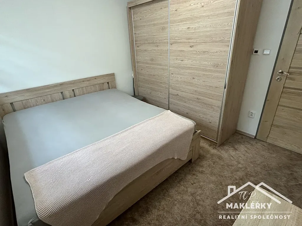 Nabízím k pronájmu byt o dispozici 2+kk v novostavbě menšího bytového domu, který se nachází v klidné lokalitě města, přitom kousek od centra nebo od lesa, kam můžete na vycházky. Výměra bytu je 35,7 m2 a dále k němu náleží terasa o velikosti 10,3 m2 a sklepní kóje v suterénu 2,5 m2. Byt sestává z obývacího pokoje s kuch. koutem, ložnice, koupelny a komory, kam se dá umístit pračka. Kuchyň je vybavena kuch. linkou se sporákem, digestoří a myčkou. Součástí vybavení je nábytek v chodbě a šatní skříň na míru v ložnici. Ostatní nábytek na fotografiích není součástí pronájmu. Byt je vytápěn el. rohožemi, náklady nejsou vysoké, protože dům je veden v en. třídě B.