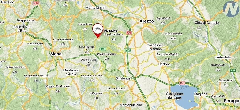Obec Pietraviva je místo, kde se sousedé vzájemně znají a život zde plyne pomaleji. Obec se nachází v údolí Valdambra, které je jedním z nejautentičtějších koutů Toskánska, stále ušetřeného od masového turismu.