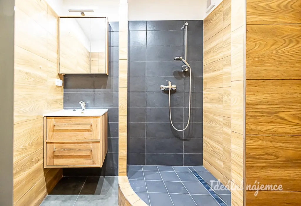 Byt prošel kompletní rekonstrukcí a nabízí se volný k zařízení dle vlastních představ. Nová kuchyňská linka disponuje lednicí s mrazákem, myčkou, elektrickou troubou, varnou deskou, mikrovlnnou troubou a digestoří. Obývací část je nezařízená, stejně jako obě ložnice. V koupelně je sprchový kout a koupelnová skříňka se zrcadlem. Toaleta je umístěna samostatně.