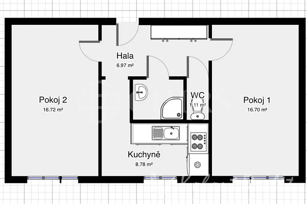 Byt prošel kompletní rekonstrukcí a je vybaven novou kuchyňskou linkou se spotřebiči – myčka, pračka, sklokeramická varná deska. Součástí bytu je také sklep o velikosti cca 2 m2.