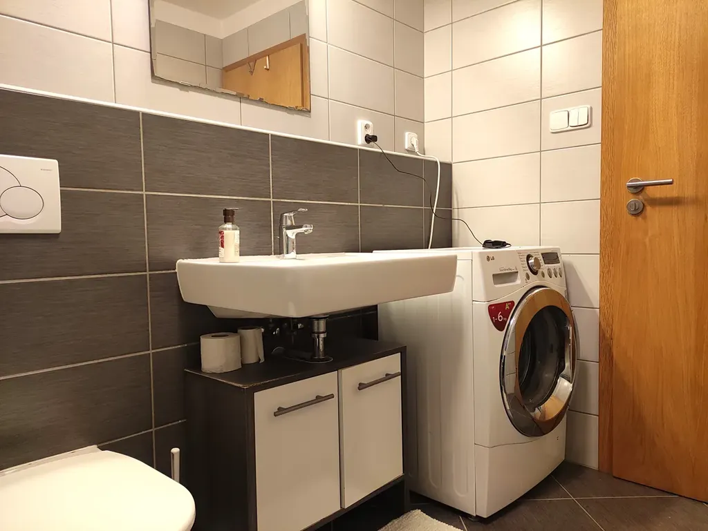• Koupelna je prostorná, s vanou, pračkou, WC