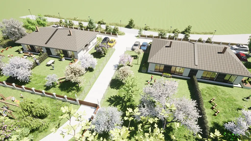 Parcela je umístěna v lokalitě, která byla projektována jako rezidenční bydlení, které zahrnuje 3 parcely na kterých jsou umístěny dva přízemní dvojdomky a jeden samostatný přízemní RD. Vjezd z hlavní silnice na parcely lze uzavřít branou a všechny parcely tak společně oddělit, čímž je docíleno uzavřené rezidenční lokality.