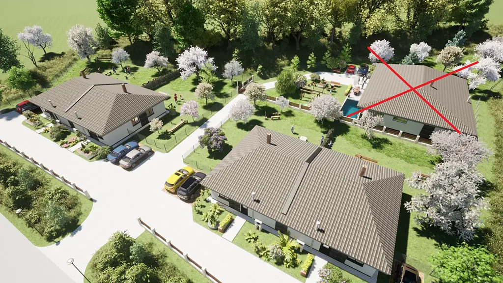 V současné době již probíhá výstavba samostatného RD na jedné z parcel a k prodeji zbývají 2 parcely. Na obou parcelách jsou vyprojektovány dva identické dvojdomky, na které je vydané stavební povolení. Druhá parcela má výměru 1047 m2 a je rovněž k prodeji. Možnost prodeje obou parcel najednou.
