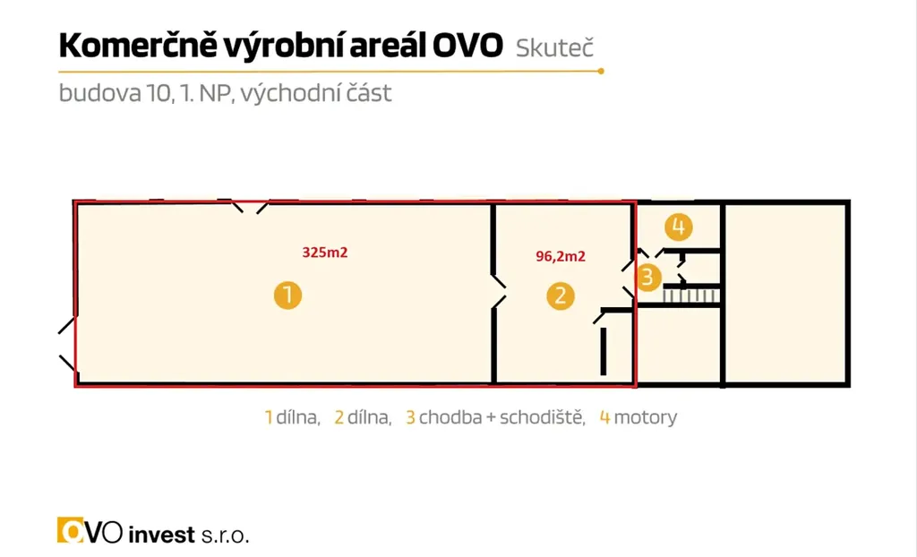 Nabízíme k pronájmu sklady č.1 a č.2 o celkové velikosti 421m², která se nachází v přízemí budovy č.10 v komerčním areálu na ulici Husova ve Skutči, v blízkosti železničního nádraží. Sklad je ihned k dispozici. V objektu je možnost pronájmu i dalších skladů, stejně jako kancelářských či výrobních prostor. Areál je kompletně oplocen a napojen na všechny inženýrské sítě. Parkování je možné přímo u budovy. Nájemné činí 28.000,- Kč + DPH, zálohy na energie se hradí zvlášť. Vratná kauce odpovídá výši dvou měsíčních nájmů. Jsme přímí majitelé, neplatíte provizi realitní kanceláři. Pokud hledáte dobrý sklad v blízkosti centra města s dobrým zázemím, neváhejte a domluvte si prohlídku.