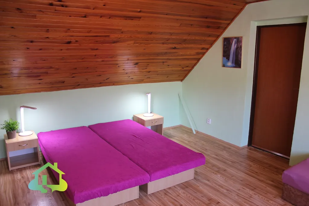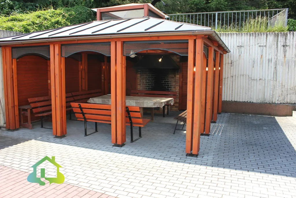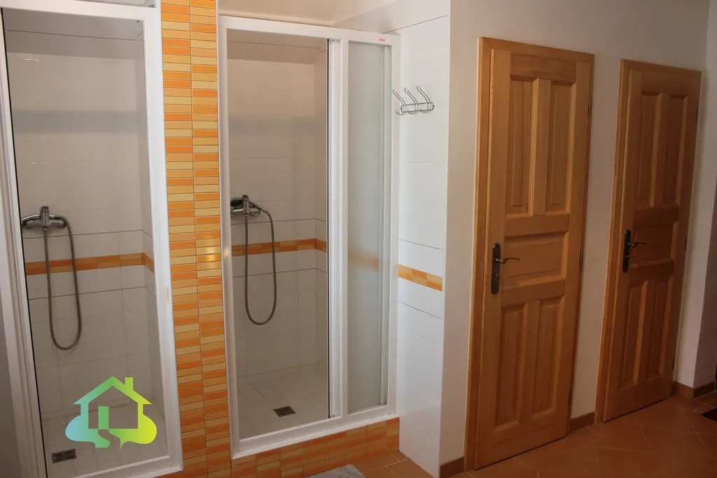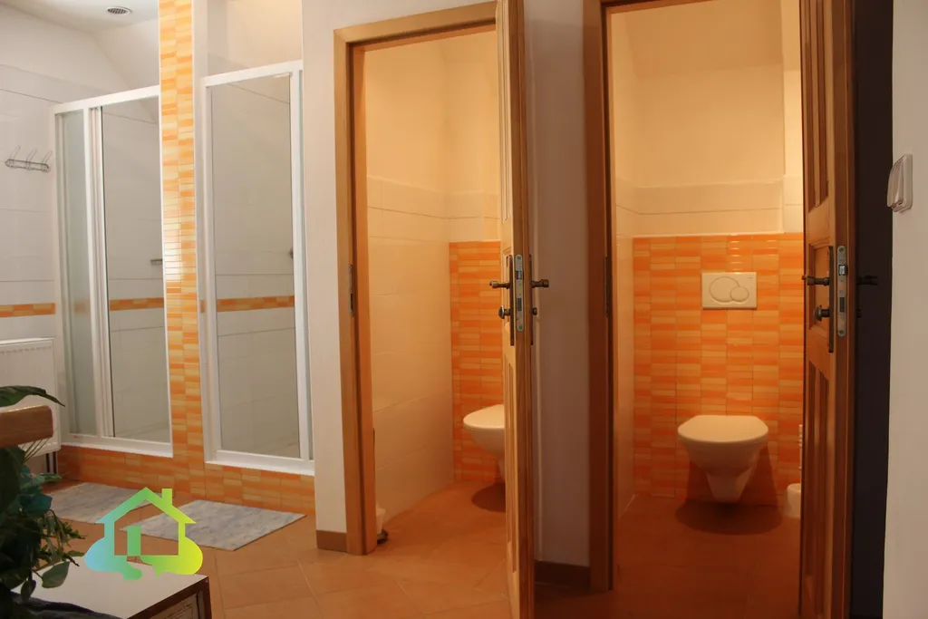 Přízemí Vás přivítá útulným obývacím pokojem (19 m²) a plně vybavenou kuchyní (17 m²) se sporákem, mikrovlnnou troubou. Srdcem této části je však velkorysá společenská místnost o rozloze 63 m² – ideální prostor pro rodinné oslavy, setkání s přáteli nebo prostě jen pro zábavu. K dispozici je zde kulečníkový i pingpongový stůl. Přímo ze společenské místnosti se otevírá cesta na zahradu. V prvním patře se nachází tři prostorné pokoje (23, 34 a 31 m²), všechny částečně zařízené nábytkem, a koupelna se dvěma sprchovými kouty a dvěma WC.