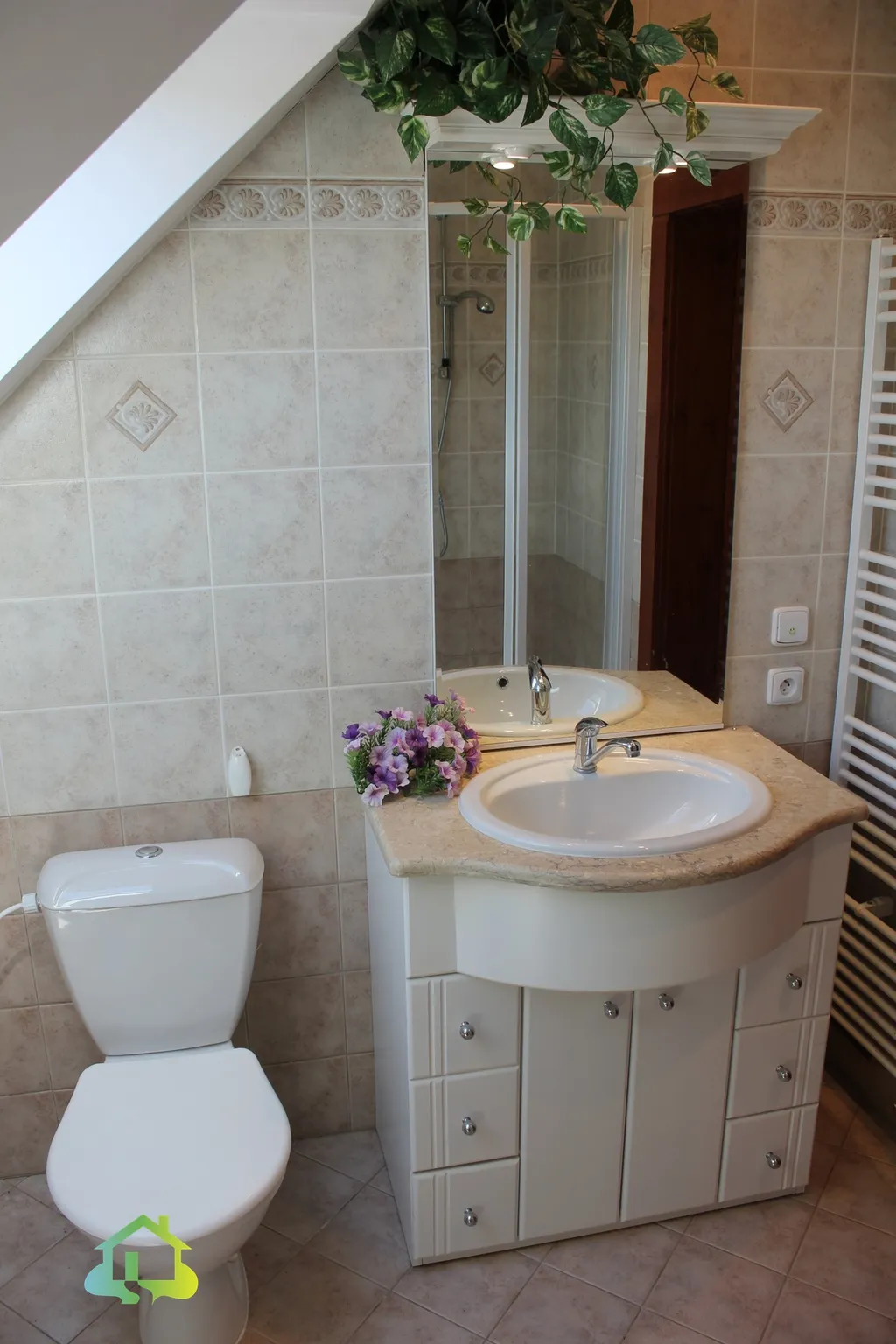 Přízemí nabízí kuchyni s jídelnou (20 m²), samostatný pokoj (19 m²) a koupelnu s masážní vanou, sprchovým koutem a WC. Kuchyně je vybavena sporákem, jídelním stolem. V prvním patře na Vás čeká velkorysý pokoj (41 m²), prostorná šatna (17 m²) a další koupelna se sprchovým koutem a WC.