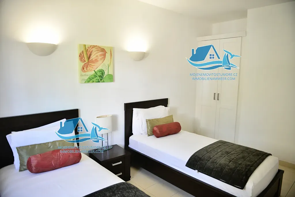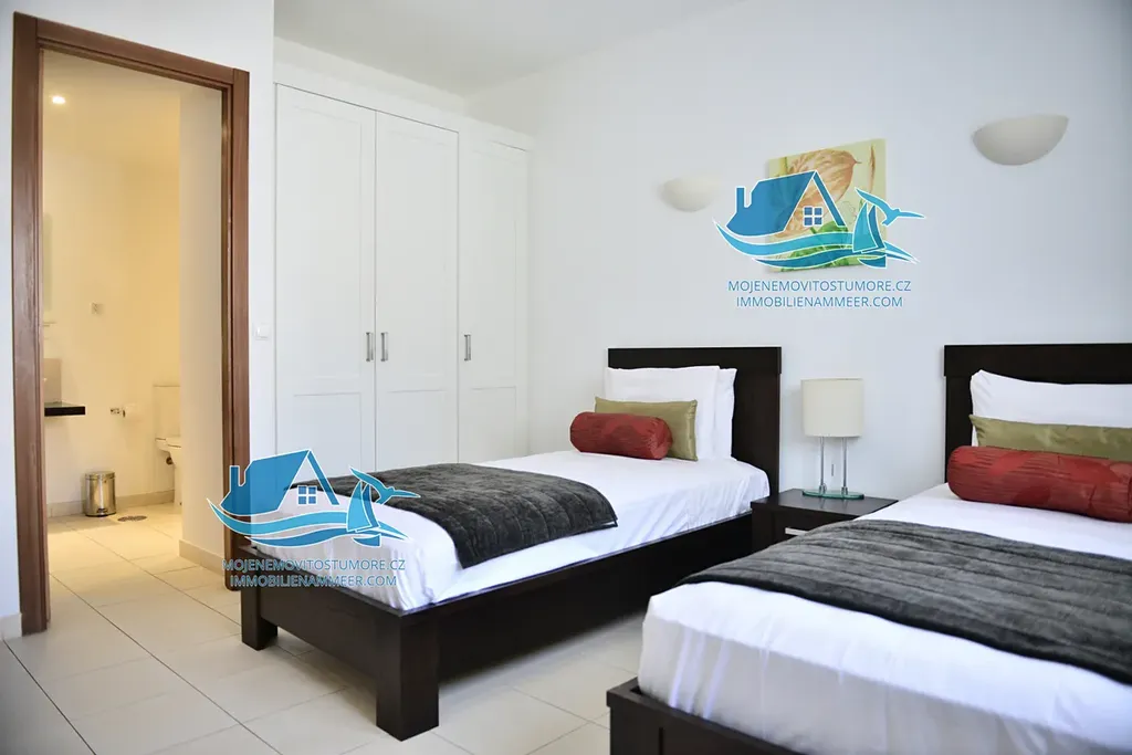 Nabízíme nádhernou vilu 153,8 m2 se čtyřmi ložnicemi v první linii u pláže! Vlastní zahrada a vlastní bazén. Unikátní investiční příležitost! Garantovaný výnos s možností využívání 5 týdnů v roce v rámci garantovaného výnosu. V době vlastní užívaní pro sebe nebo své hosté majitel ne platí energie, bazény, relaxační zóny, lehátka a slunečníky na pláži! Bezplatní prohlídky na místě! 47 týdnu v roce kompletní správa pronájmu. Bez poplatek na údržbu za předpokladu uzavření smlouvu na pronájem se správcovskou společnost! V případě, že majitel si nepřeje garantovaný vynos je poplatek na údržbu €327.18 měsíčně. Předpokládaný roční vynos 6-7%, garantovány výnos je 5%. Výběr dalších nemovitostí různých velikostí a dispozic v tomto a sesterských resortech. Ceny od € 150 000! Konkrétní popsána nemovitost je nádherná Villa v první linií v 5* resortu Tortuga Beach Resort na ostrově Sal, Kapverdy. Villa je dvoupodlažní, na pozemku o velikosti 288 m2, nádhernou terasu o velikosti 40.3 m2, a vlastní bazén.