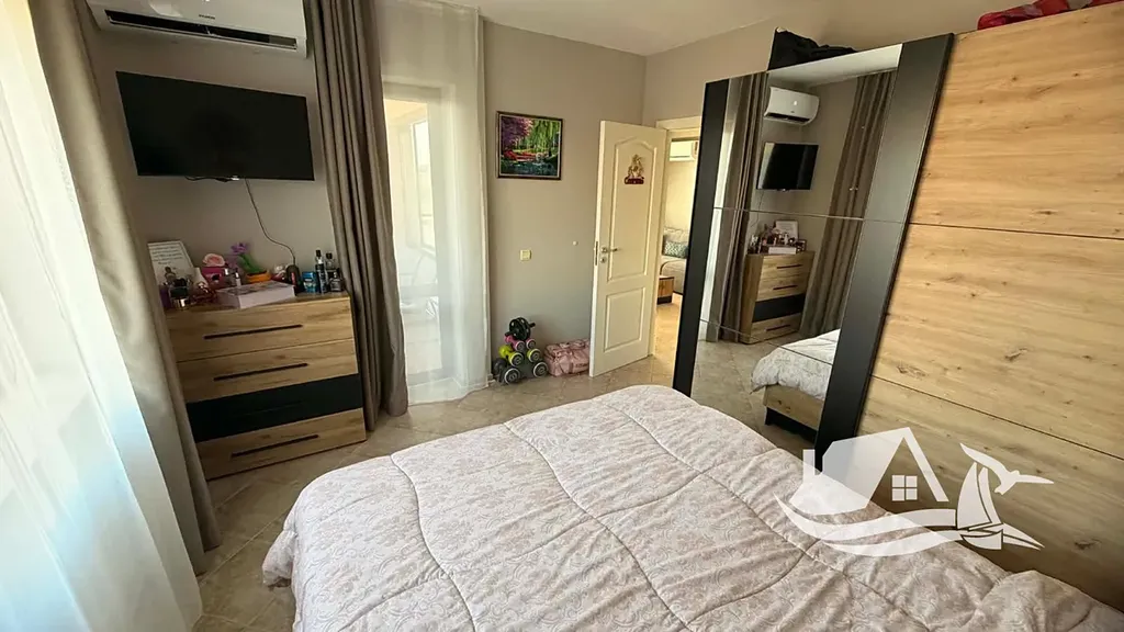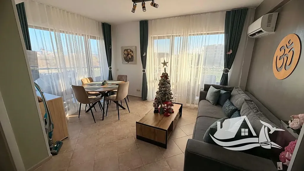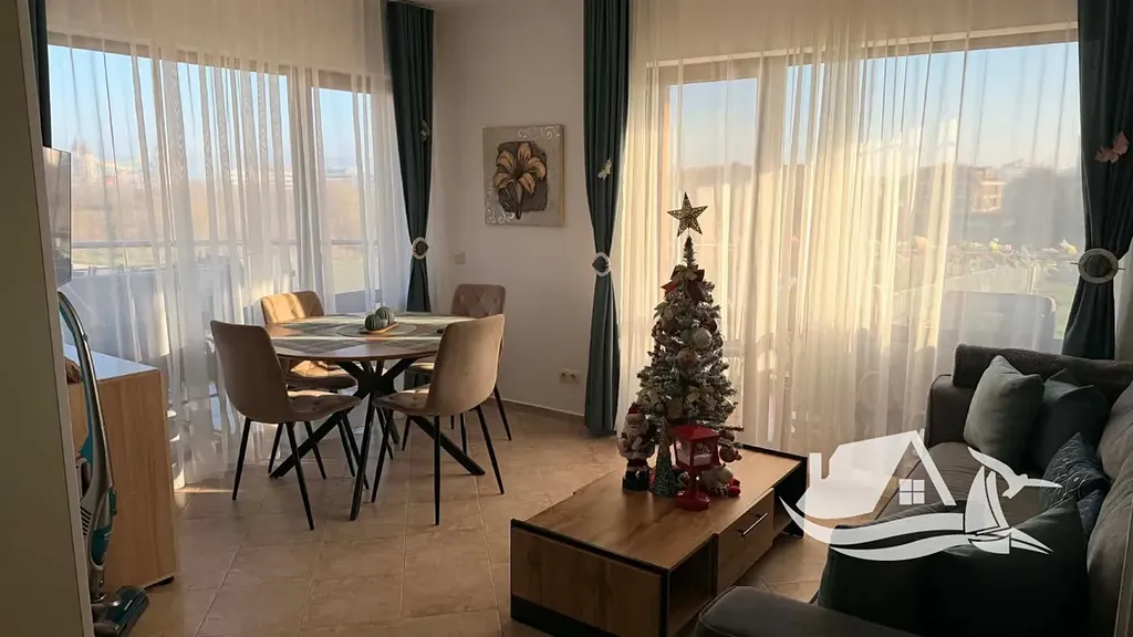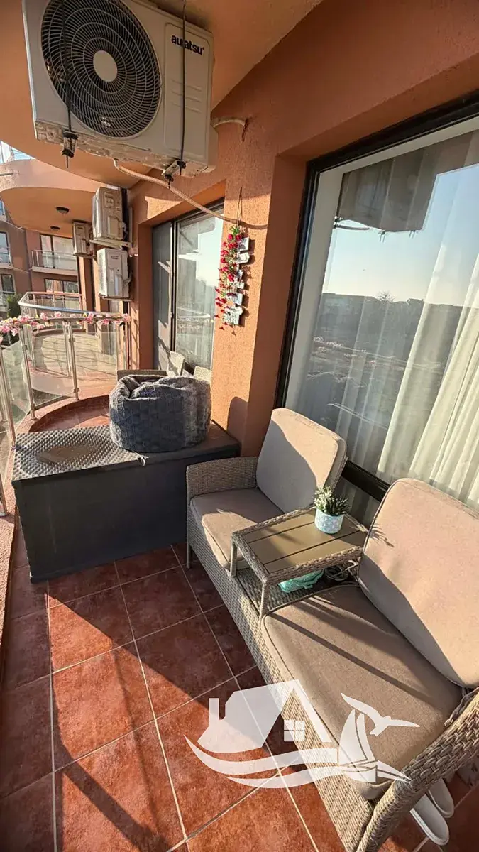 Apartmán se nachází ve druhém patře domu s výtahem v pečlivě udržovaném rezidenčním komplexu Sun Sea Resort. Už při příchodu působí harmonicky, vzdušně a velmi útulně. Východní orientace zajišťuje dostatek přirozeného světla po celý den a vytváří příjemnou atmosféru pro každodenní život i odpočinek.