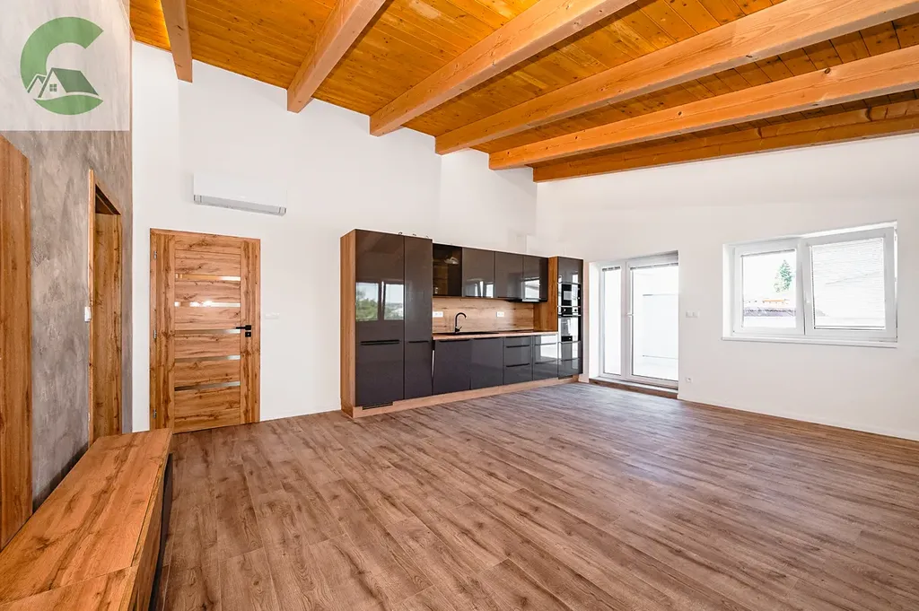 Vážení klienti, nabízíme moderní novostavbu bytu 3+kk o ploše 70 m² s vlastní terasou (11 m²) a parkovacím místem v klidné části Olomouce – Hodolany. Byt se nachází v posledním patře nového bytového domu a je jediný na patře, což zajišťuje maximální soukromí a jedinečnou atmosféru s dřevěnými stropy a přiznanými trámy.