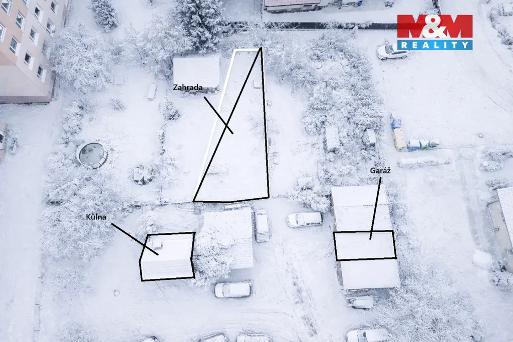 Za domem se nachází příjemná zahrada patřící přímo k bytu k relaxaci, ideální pro odpočinek nebo drobné zahradničení, doplněný kůlnou pro uskladnění nářadí či kol.