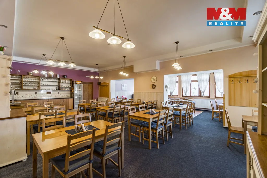 Nově Vám nabízíme za sníženou cenu k prodeji zavedený útulný hotel v lůně Rychlebských hor, v malebné obci Černá Voda, která v poslední době zažívá nebývalý rozvoj z hlediska turismu, cykloturistiky a rodinné rekreace. Hotel disponuje kuchyní, restaurací, pivnicí a venkovní zahrádkou. Ubytovací kapacita čítá 30 lůžek v pokojích s příslušenstvím. Vytápění hotelu je řešeno tepelným čerpadlem. Pozemek s celkovou výměrou 7610 m2 umožňuje výstavbu dalších vedlejších objektů, případně umožňuje jiný účel využití. Okouzlí Vás panenská příroda s čistým ovzduším, s rybníky uprostřed lesů, zatopenými žulovými lomy a dalšími turisticky atraktivními místy. V této nemovitosti vidím velký potenciál. Nemovitost můžete převzít a hotel začít ihned provozovat. V ceně nemovitosti je totiž veškeré vnitřní vybavení a zařízení. Je to ideální místo pro rekreaci a relaxaci. Pro více informací a termín prohlídky mne neváhejte kontaktovat. S financováním rádi poradí naši hypoteční specialisté.