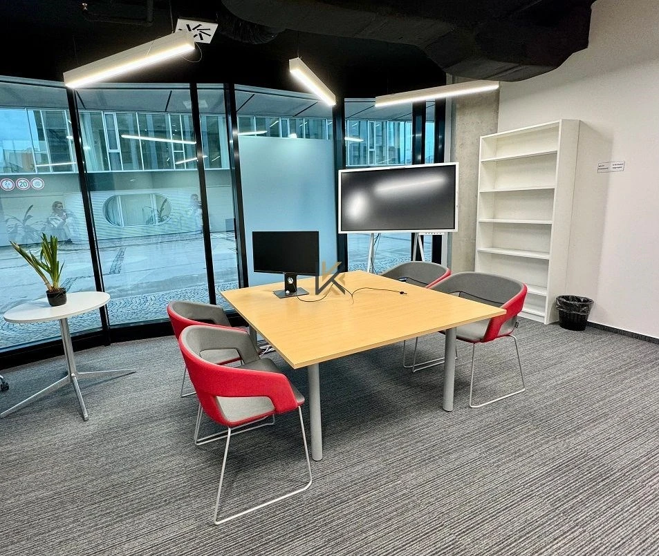 Obchodní prostory o výměře 194 m2 v budově City Element na Pankráci. Prostor je stále v nájmu, volný po domluvě. Jednotka má zdvojené podlahy, wc a kuchyňku, dva vchody, vybudované příčky a v prostoru šikmé nosné sloupy. Výloha směřuje k budově Trimaran.
