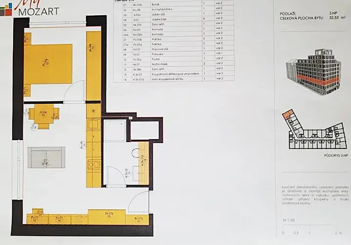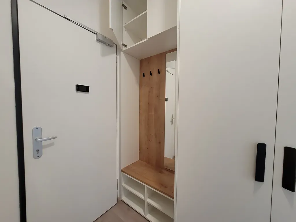 Plně vybavený (přesně na míru) byt pro max 2 osoby se nachází v 3. patře, s okny do tichého vnitrobloku. K dispozici výtah a malý sklep. Celková užitná plocha bytu činí 32m². V obýváku je k dispozici plně vybavená kuchyňská linka s pračkou, stůl a židle, pracovní místo. V ložnice prostorná vestavěna skříň, postel a noční stolky. Chodba a koupelna s množstvím úložných prostorů. V bytě je zavedený optický Internet.