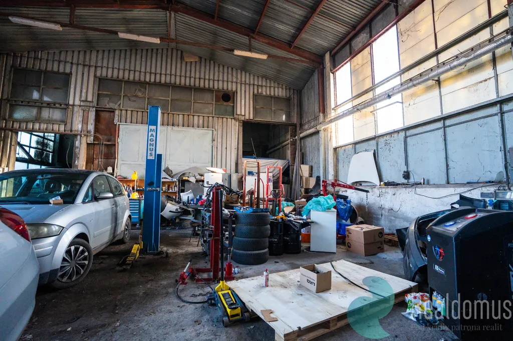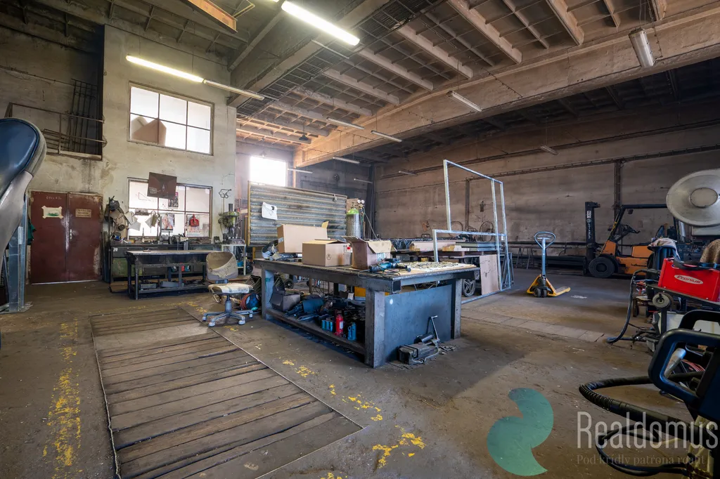 - 1x montovaná skladovací hala s kovovou konstrukcí a pláštěm a podezdívkou se zastavěnou plochou 500 m2. Cca 400 m2 tvoří vnitřní prostor objektu – dílna a cca 100 m2 tvoří stavebně navazující přístřešek před halou. Vnitřní prostor objektu je v současné době stavebně rozdělen na dva samostatné výrobní dílenské prostory,