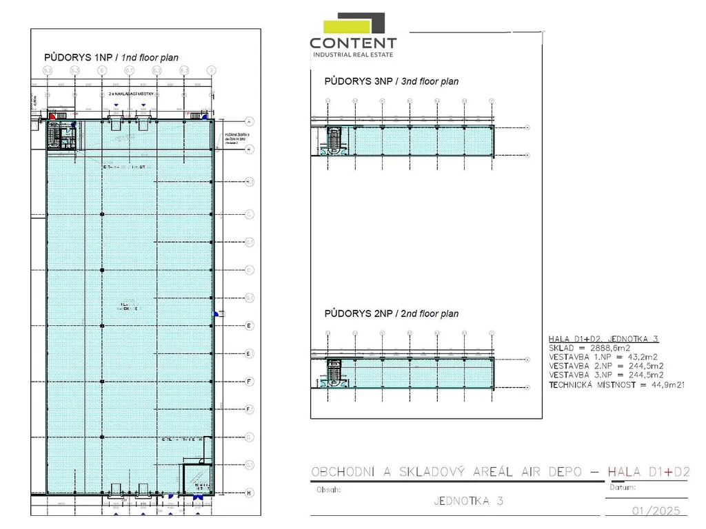 - volná část budovy D1/D2 ve výstavbě, k dispozici 02/2026