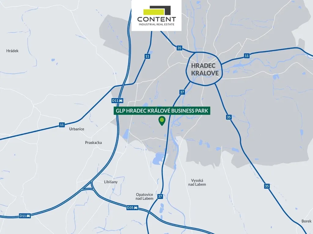 V zastoupení majitele a bez provize nabízíme komerční prostory vhodné pro sklad nebo výrobu o velikosti 2940 m², umístěné v nově vznikajícím parku, nedaleko dálnice D11 a D35.