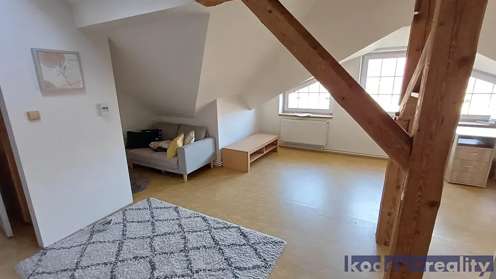 Dispozice: prostorná vstupní chodba, koupelna, samostatné WC, ložnice + hlavní obytná místnost s kuchyňským koutem. Byt je po rekonstrukci – zánovní kuchyňská linka se sporákem, nové WC, nová koupelna se sprchovým koutem, plynový kotel s bojlerem, mikrovlnná trouba, klimatizační jednotka, zanechané přiznané trámové prvky. Sítě: elektřina, ohřev vody a vytápění plynový kotel lokální, plyn.