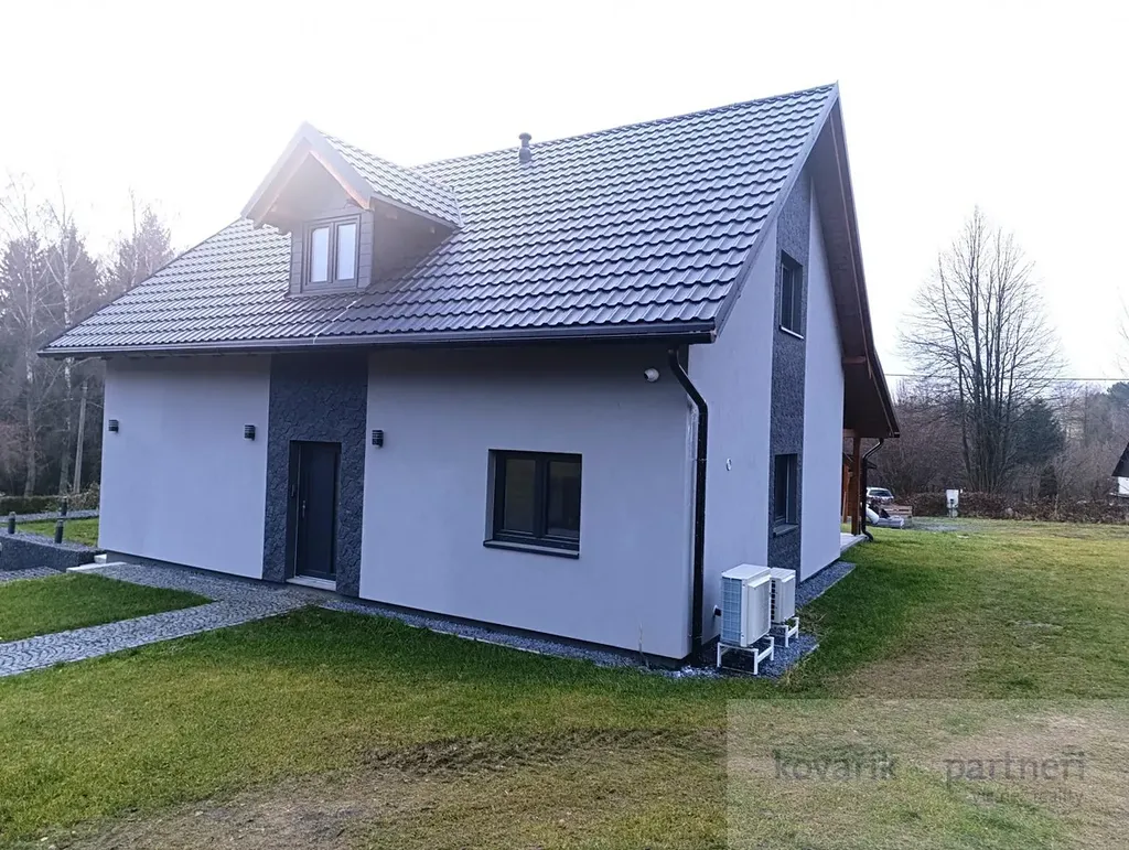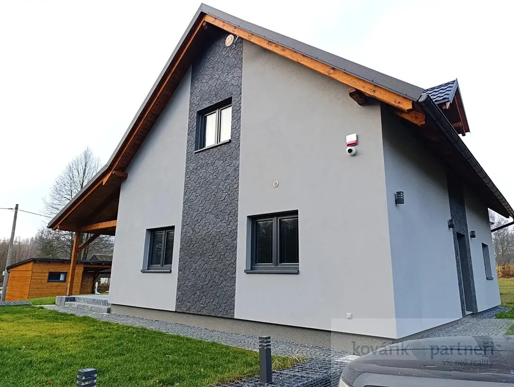 Samostatně stojící moderní dřevostavba je umístěna na pozemku o velikosti 1558 m2. Nabízí dostatek prostoru pro pohodlný život díky velké užitné ploše 176 m2. Dům je p patrový se 4 ložnicemi a 2 samostatnými koupelnami. V přízemí je obývací pokoj s kuchynský koutem a přímým výstupem na krytou slunnou terasu na jižní stranu, poskytující dostatečný prostor pro velkou rodinu nebo pro ty, kteří hledají i vícegenerační bydlení. Dále je zde ložnice, chodba, komora ,koupelna a WC .