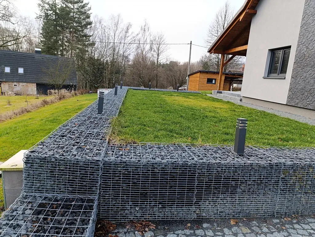 Na zahradě je položen nový trávník, také jsou zde i nově osázené okrasné keře u plotu.